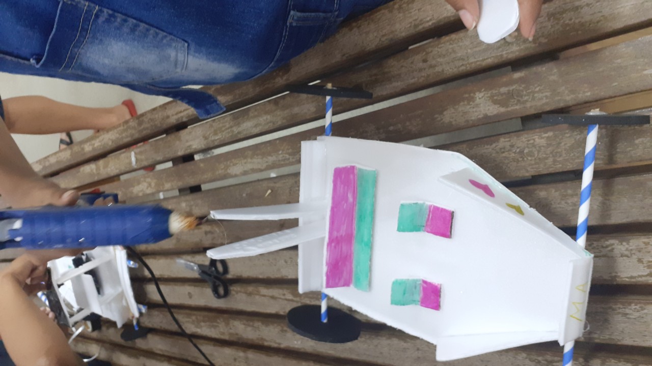 Maria Eduarda era uma das poucas meninas que se arriscaram na oficina. Ao lado do irmão Lucas, ela produziu o brinquedo com facilidade e ainda ajudou quem estava do lado. Veja só a felicidade da dupla na oficina: