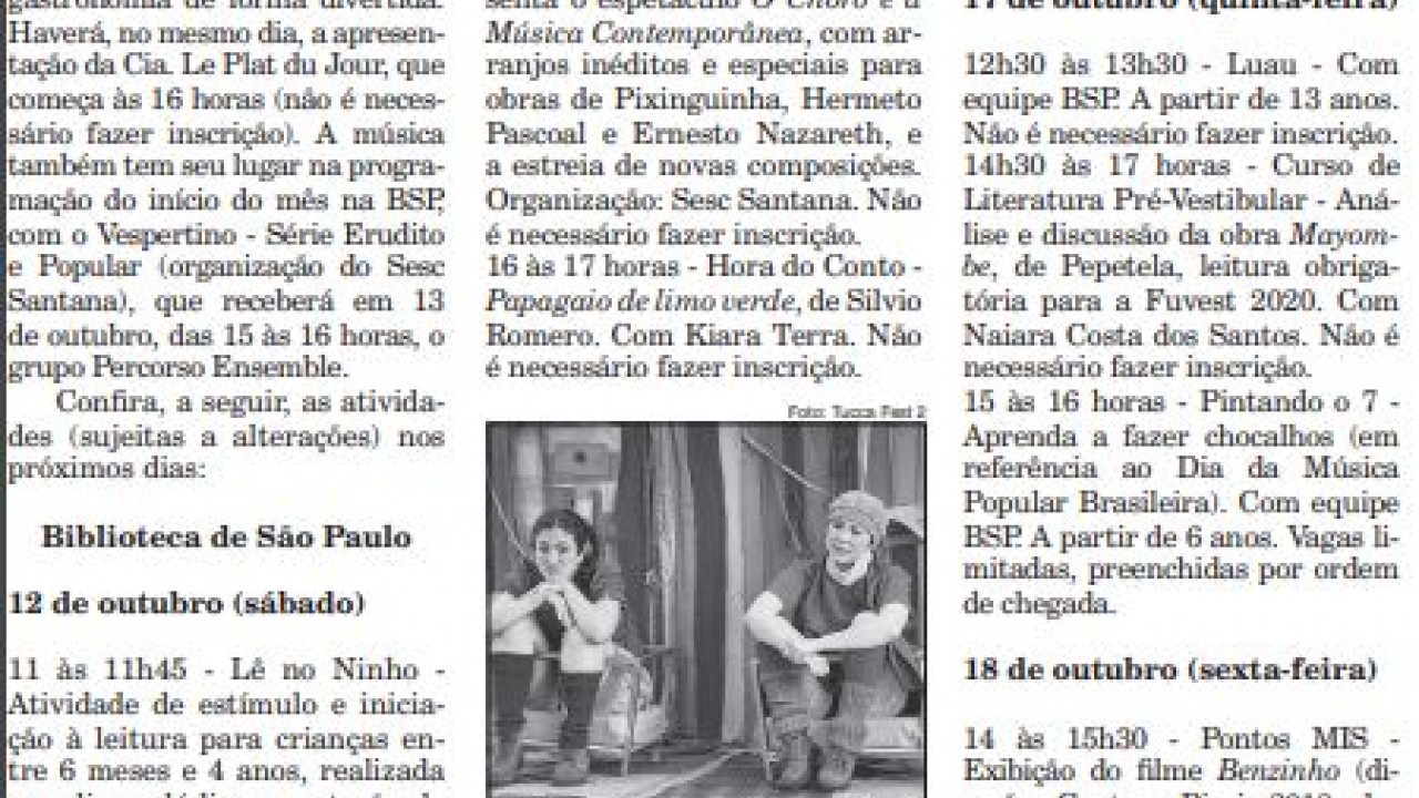 A Gazeta da Zona Norte fez matéria sobre a programação preparada pela BSP para o fim de semana do Dia das Crianças (e Dia da Leitura). Confira: