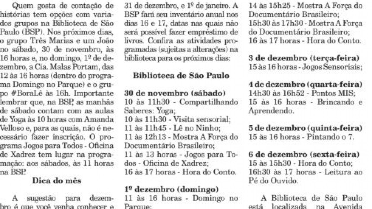 A programação dos próximos dias na BSP consta da edição da Gazeta da Zona Norte que circula hoje na região. Confira.